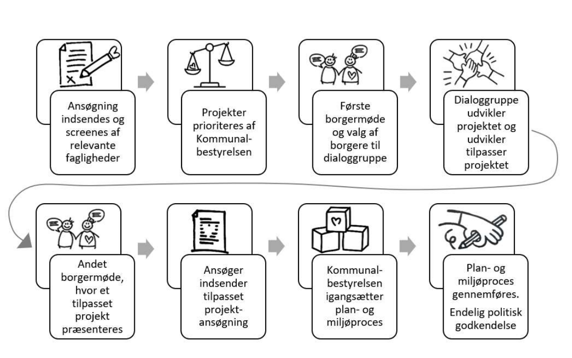 Læs mere om processen for de udvalgte projekter, hvor næste skridt nu er borgerinvolvering.